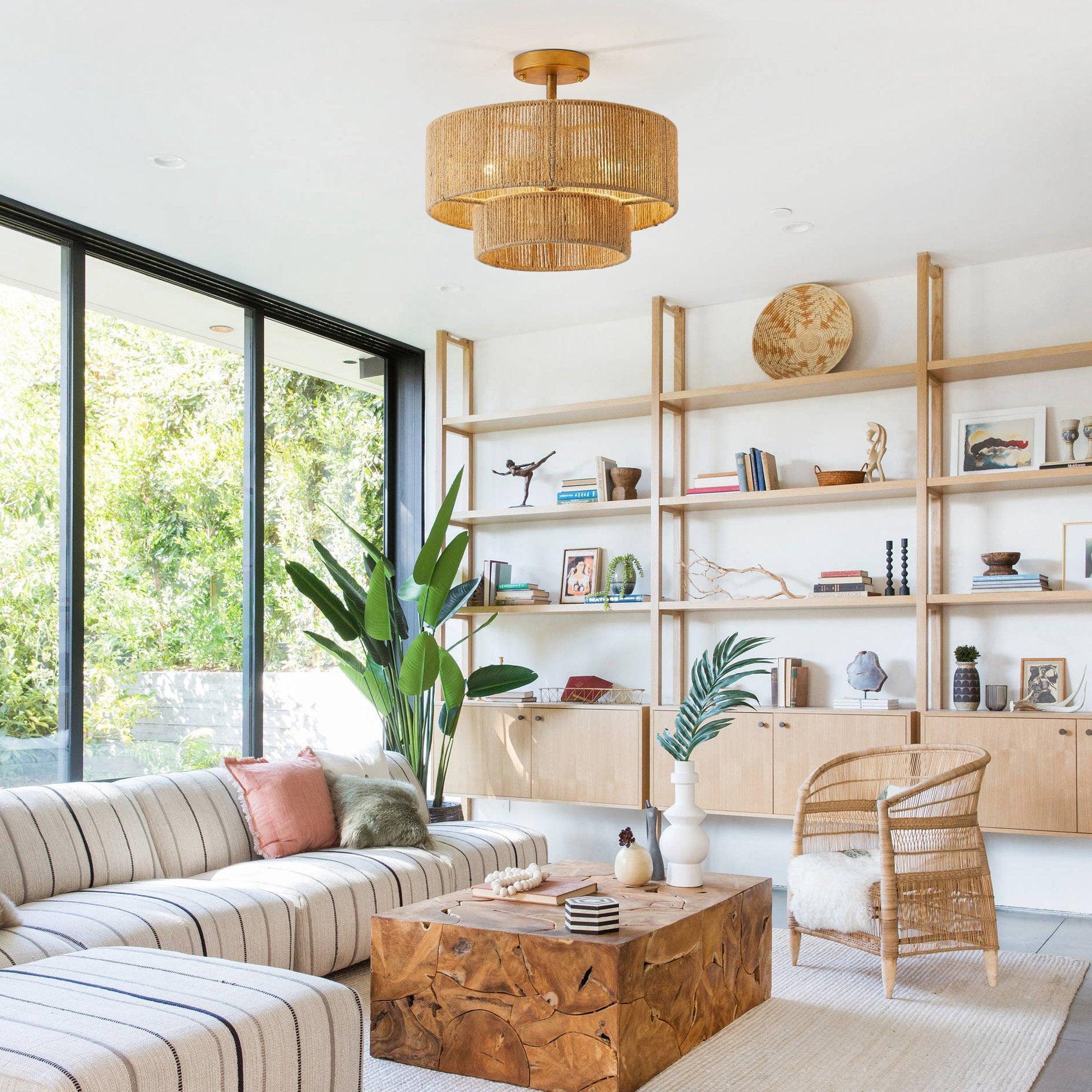 - Handwoven drum shade — Adds visual depth and artisan-crafted appeal to farmhouse and boho interiors.