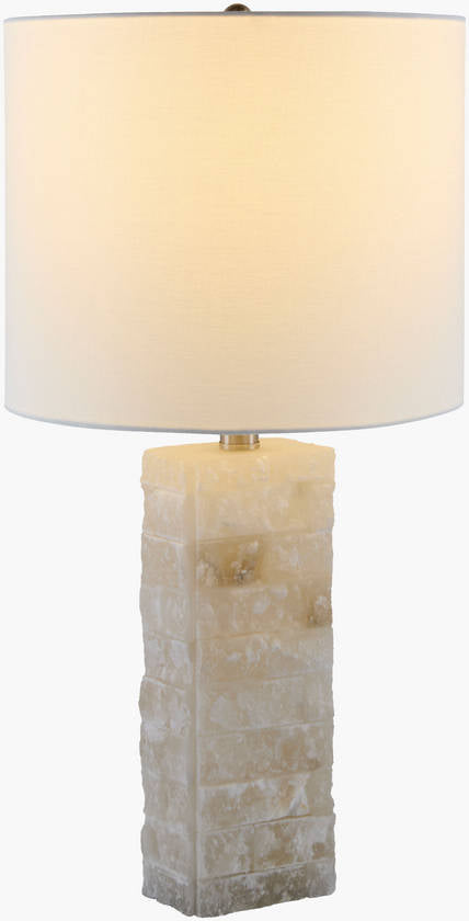 - Material: Body: Stone; Shade (Outside): Linen; Finial: Iron