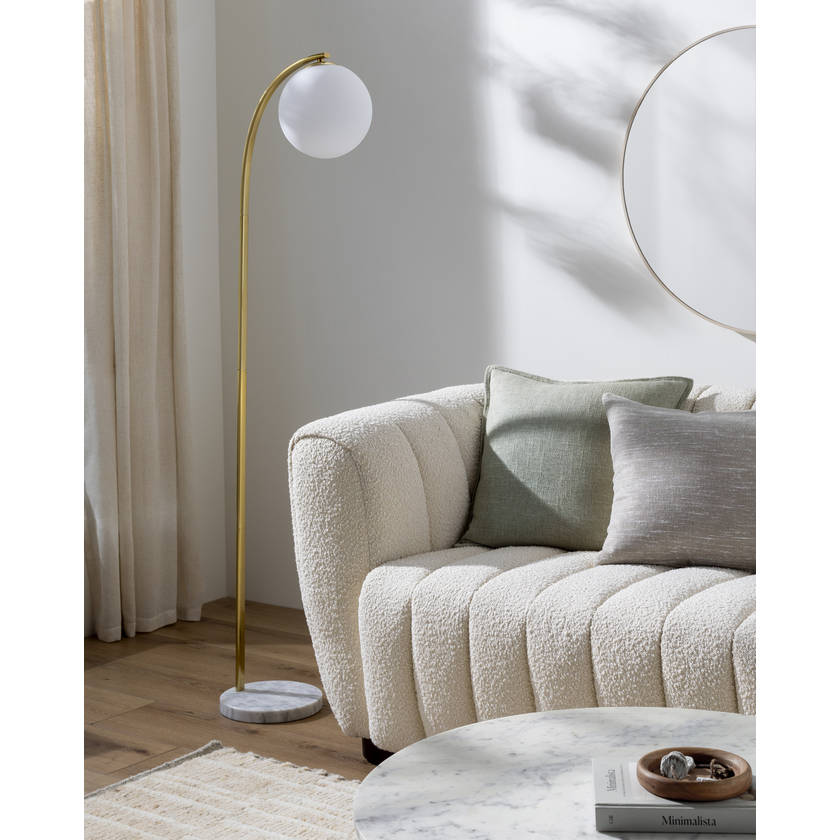 Illuminate your living space with the charming Azim Accent Floor Lamp. This country cottage-style floor lamp brings a touch of rustic elegance to any room with its metal body, marble base, and glass shade. Whether it's by your reading chair or in the corner of your bedroom, this versatile lamp will not only brighten up your area but also enhance its overall aesthetic appeal. It's easy to maintain too - just wipe clean with a dry cloth and avoid harsh cleaners to keep its finish looking fresh and new. Choose the Azim Accent Floor Lamp for a delightful fusion of style and function.