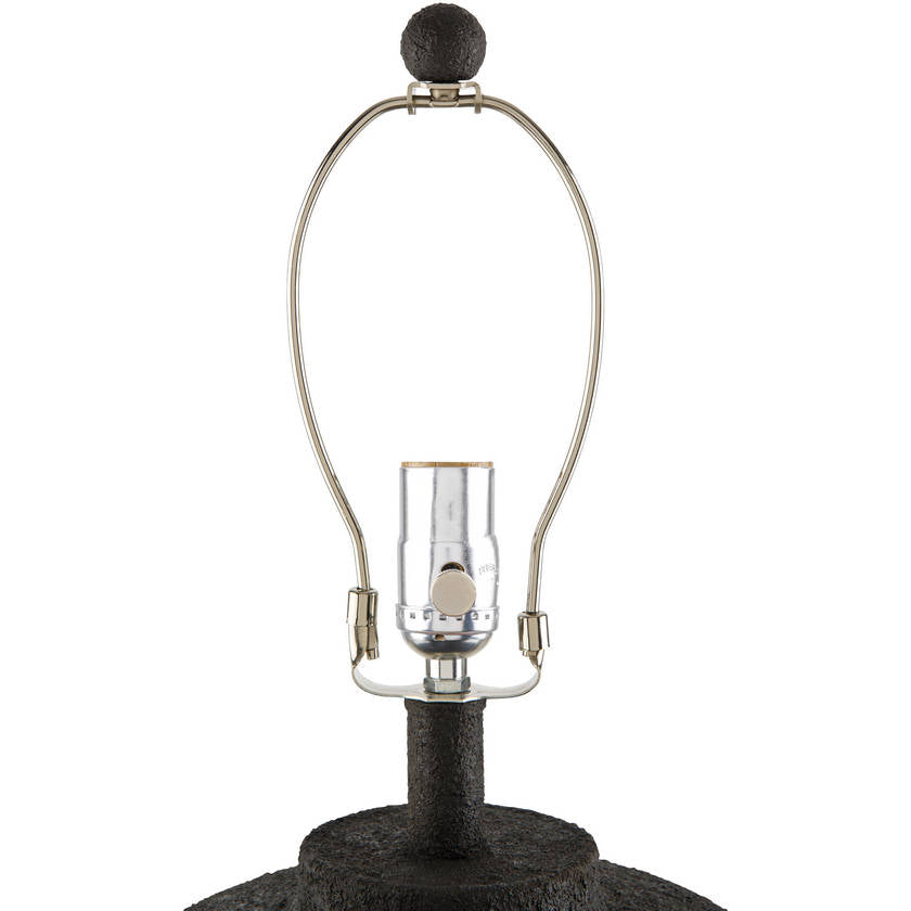 Crafted meticulously from high-quality resin, the lamp's robust black body ensures both visual charm and remarkable durability. The elegant combination of a linen outer shade and a metal interior not only enhances its durability but also diffuses a soft, even light, ideal for creating an ambiance conducive to relaxation or productivity. The careful attention to material quality promises lasting performance and enduring beauty.
