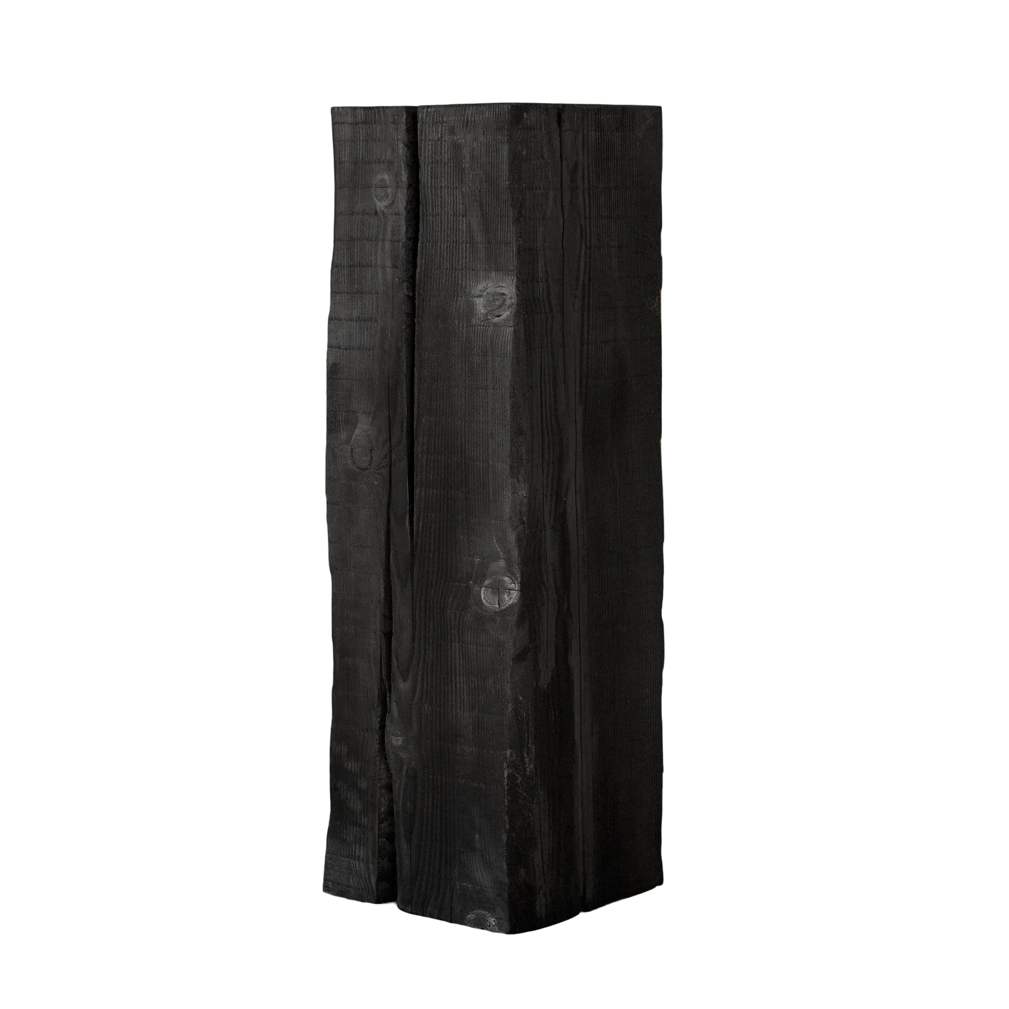 Sculptural in its own right, the Charcoal Sculpture Pedestal, crafted from solid Douglas Fir, undergoes the ancient shou-sugi-ban technique, revealing deep grooves and textures that evolve with time. As it ages, the wood tells its own story, expanding and shifting, showing hints of the natural grain beneath its burnished surface. Raw, organic, and unapologetically bold, this piece brings a sense of wild beauty into your home, letting nature take center stage.