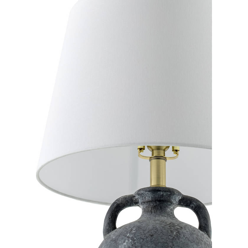 - Material: Body: Ceramic; Shade (Outside): Linen; Shade (Inside): Polyester; Finial: Iron