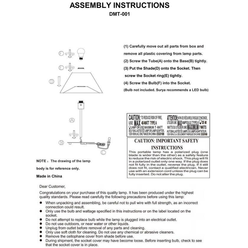 - Material: Body: Iron; Shade (Outside): Linen
