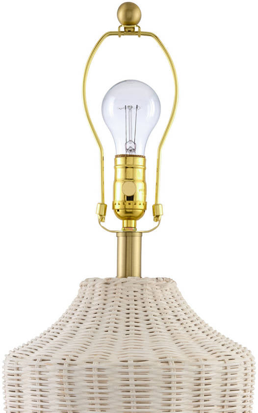 - Colors: Body: Wheat; Base: Metallic - Brass; Shade: White; Finial: Metallic - Brass; Harp: Metallic - Gold; Cord: Translucent