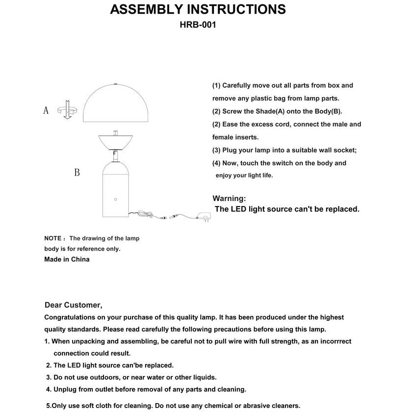 - Colors: Body: Black; Base: Black; Shade (Outside): Black; Shade (Inside): White; Cord: Black