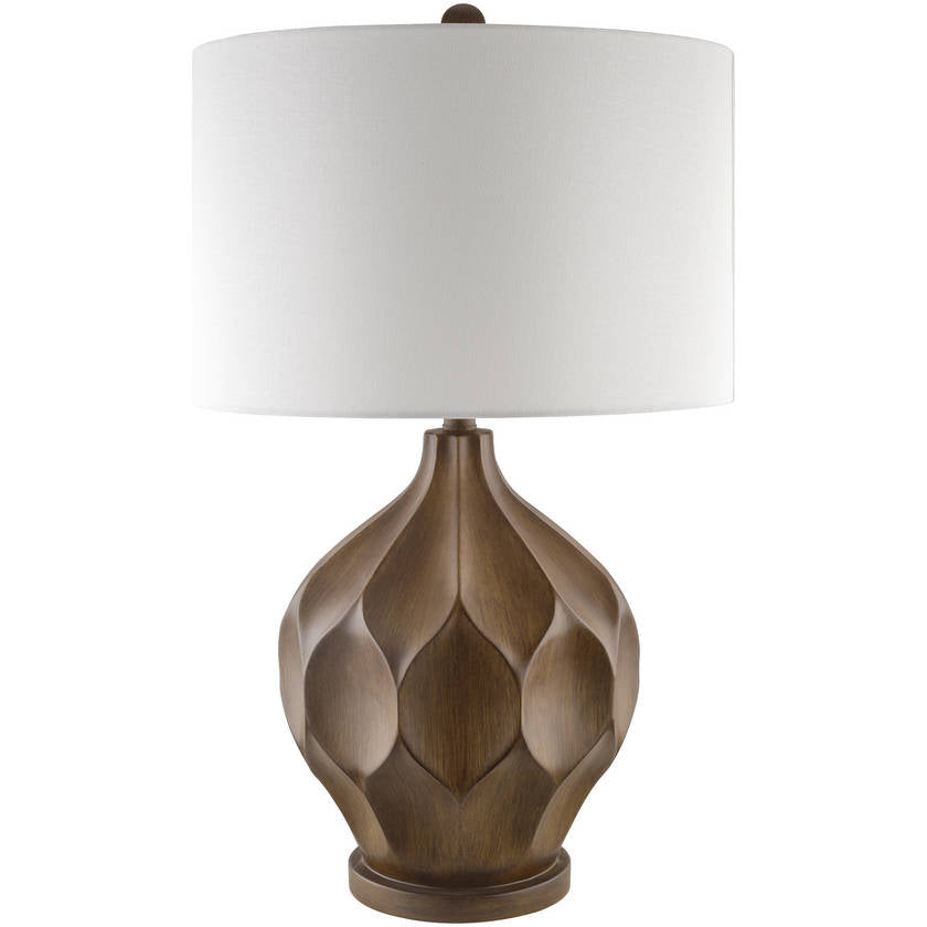 - Colors: Body: Brown; Base: Brown; Shade: White; Finial: Brown; Harp: Metallic - Brass; Cord: Translucent