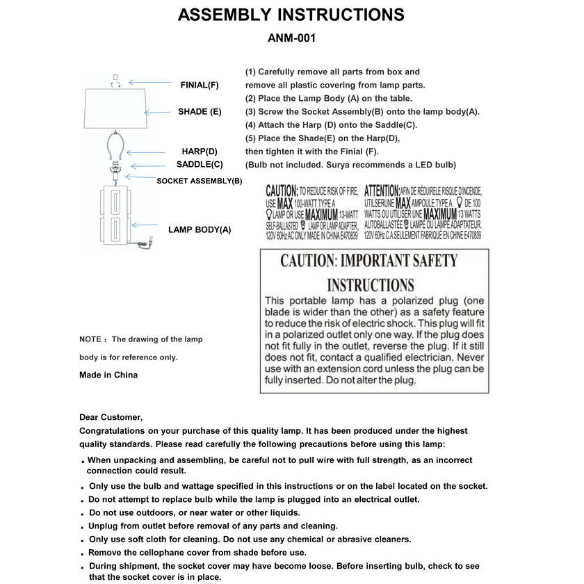 - Colors: Body: Ivory; Shade: White; Finial: Metallic - Bronze; Harp: Metallic - Brass; Cord: Translucent
