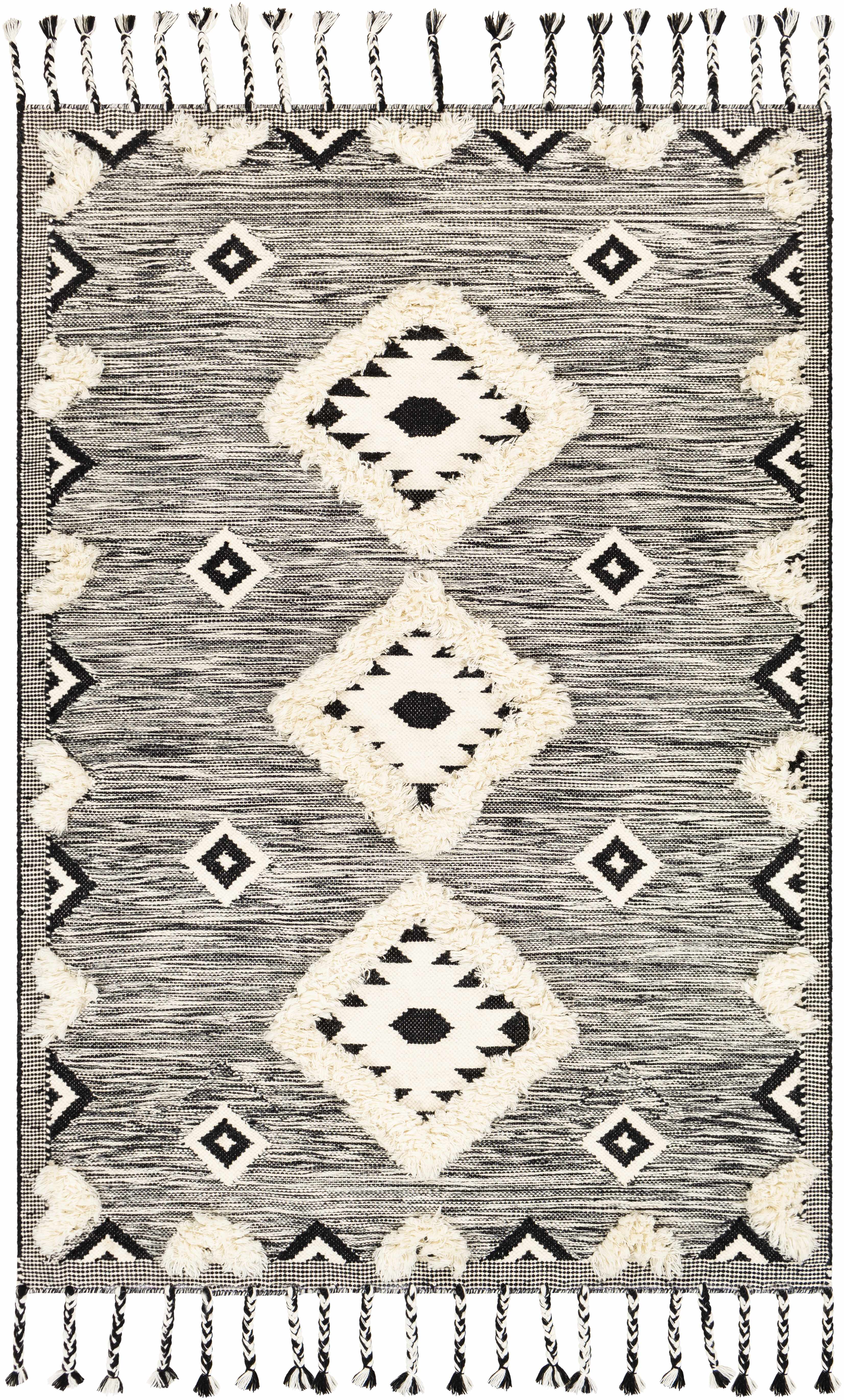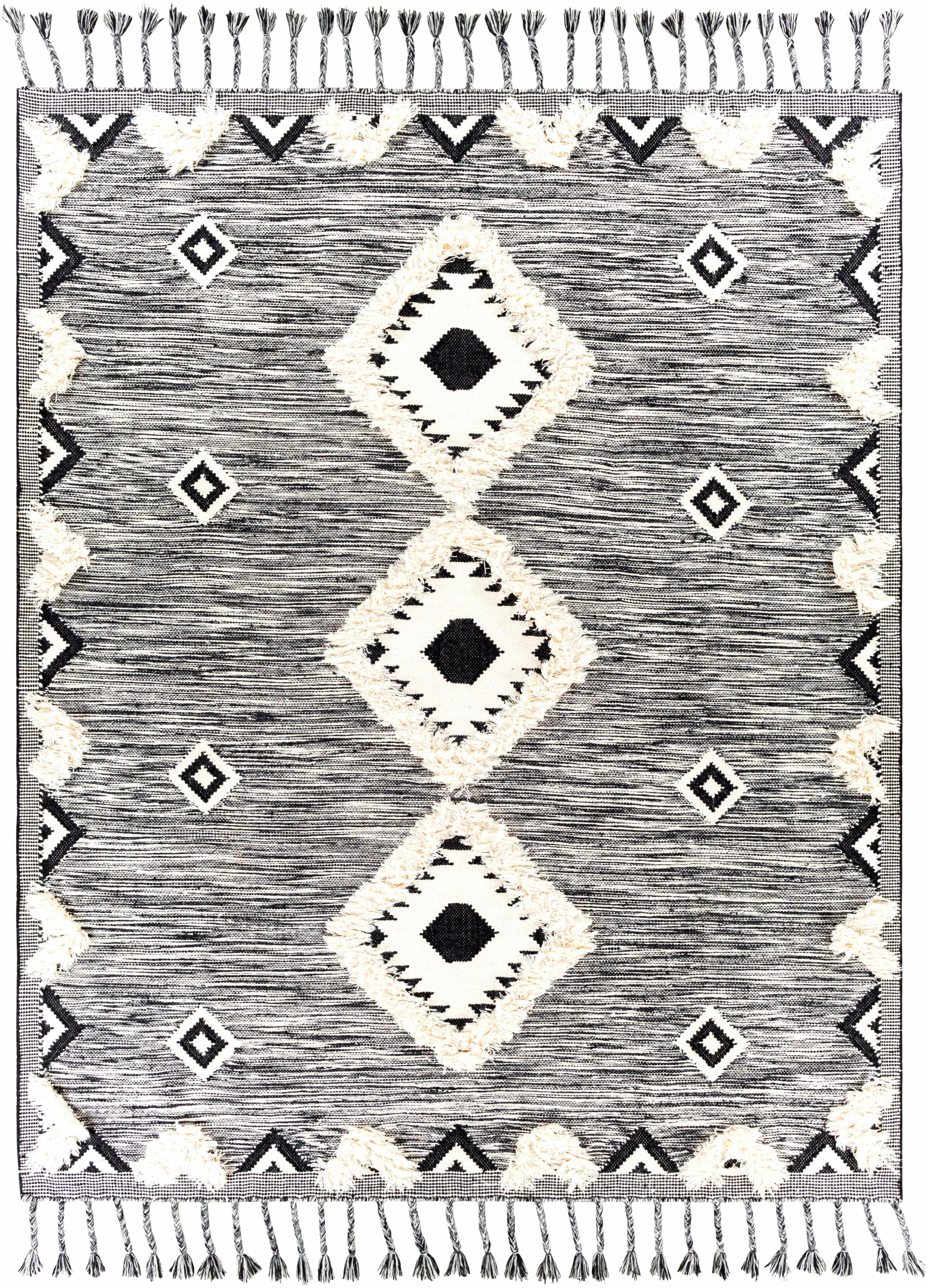 Gardner Cream on Gray Wool Tassel Rug - Clearance
