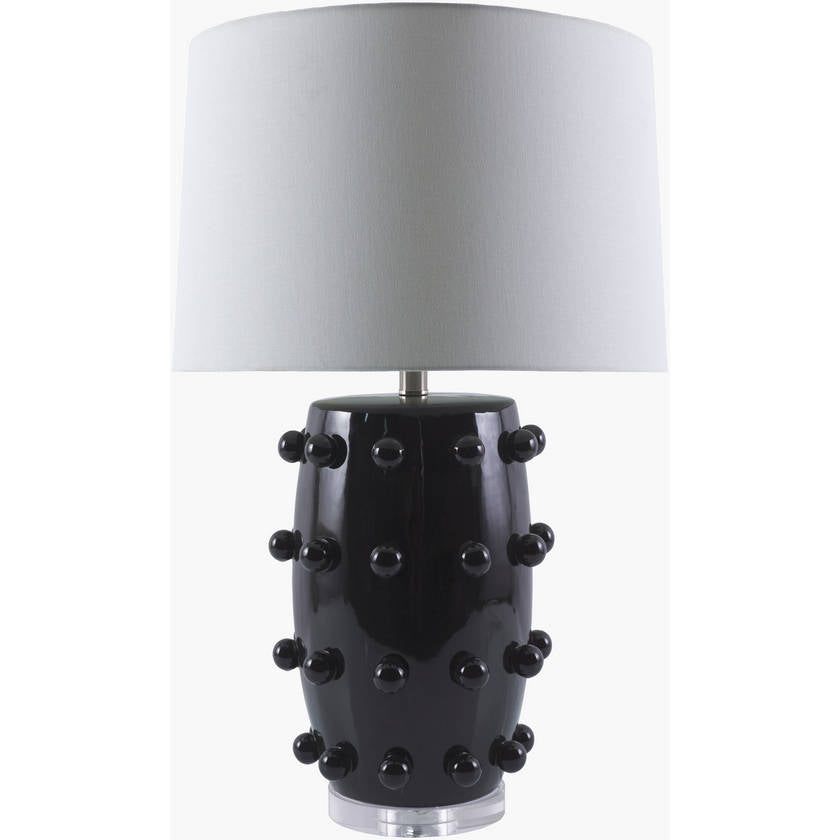 - Colors: Body: Black; Shade: White; Finial: Clear; Harp: Metallic - Nickel; Cord: Translucent