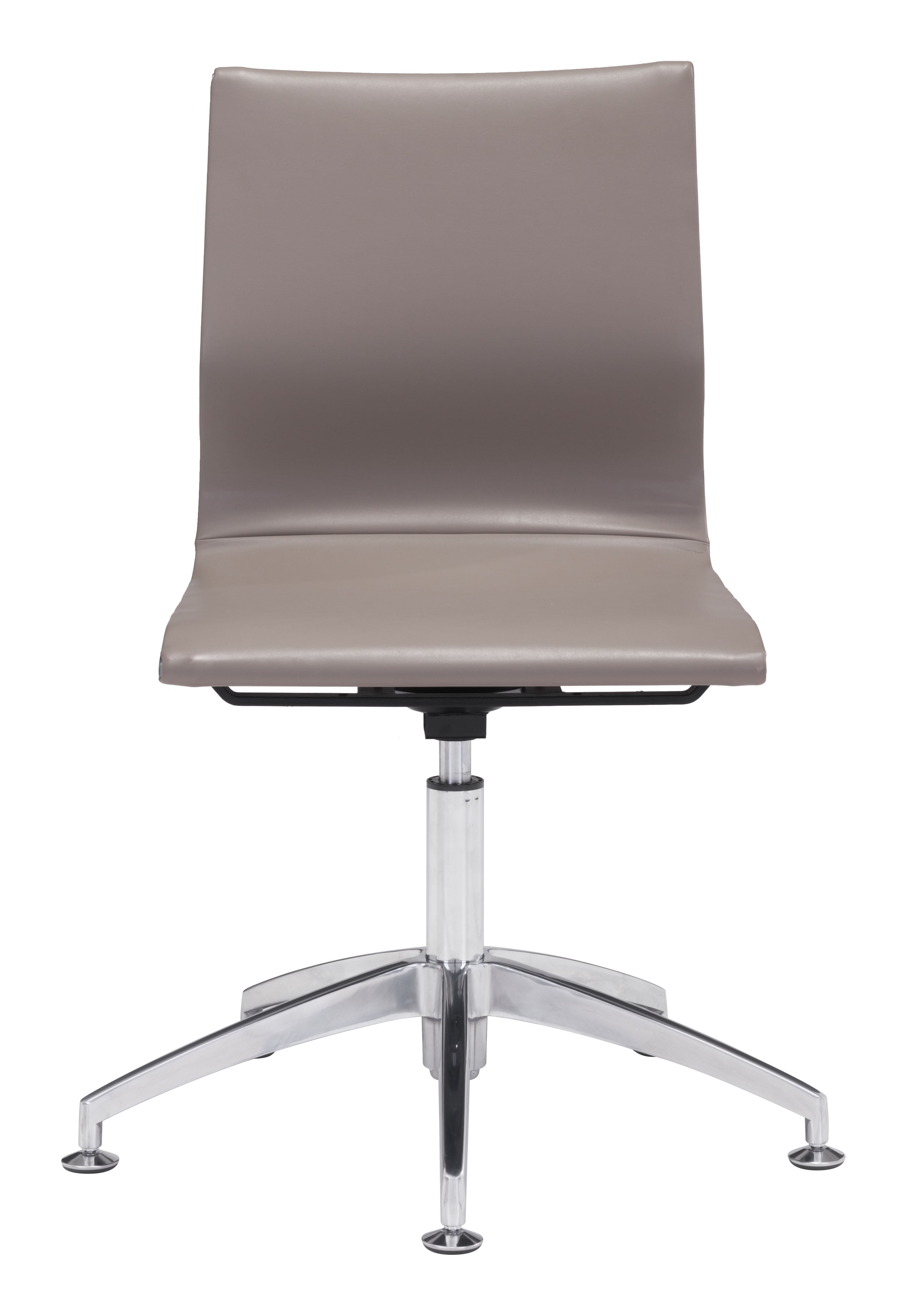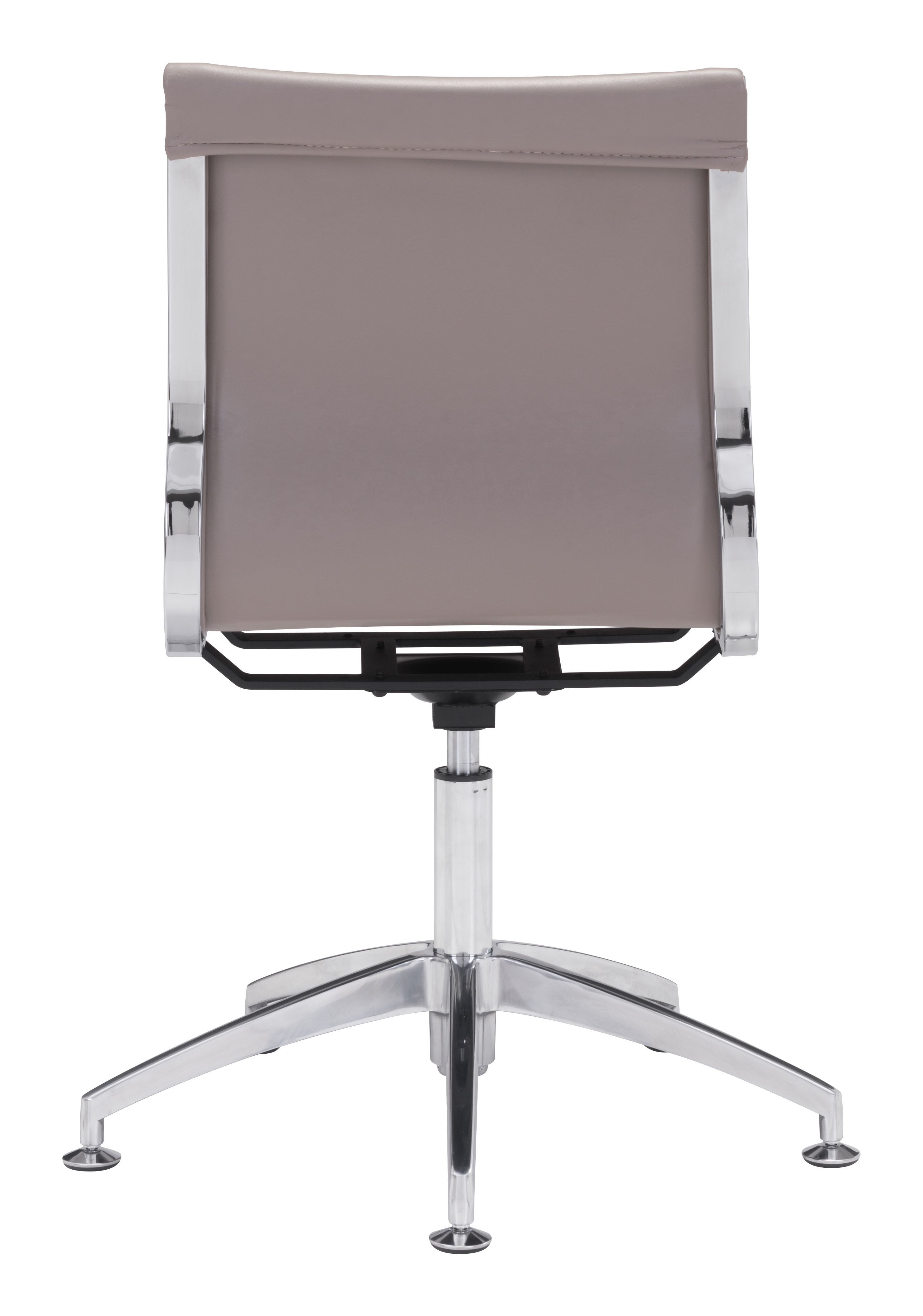 Glider conference chair features a slim yet comfortable profile with added lumbar support, soft 100% Polyurethane upholstery accented with chrome star base. Color options are black white & taupe 100% Polyurethane.