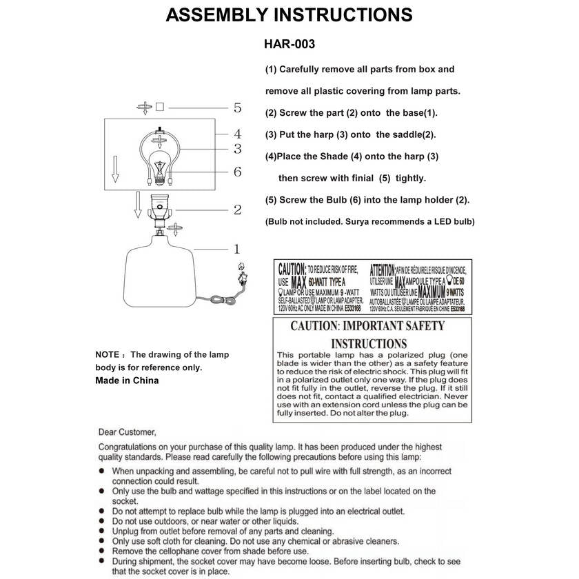 - Colors: Finial: Metallic - Nickel; Harp: Metallic - Nickel; Cord: Translucent