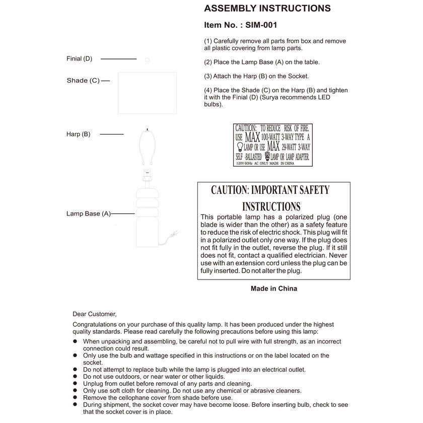- Colors: Body: Wood; Shade: White; Finial: Wood; Harp: Metallic - Gold; Cord: Translucent