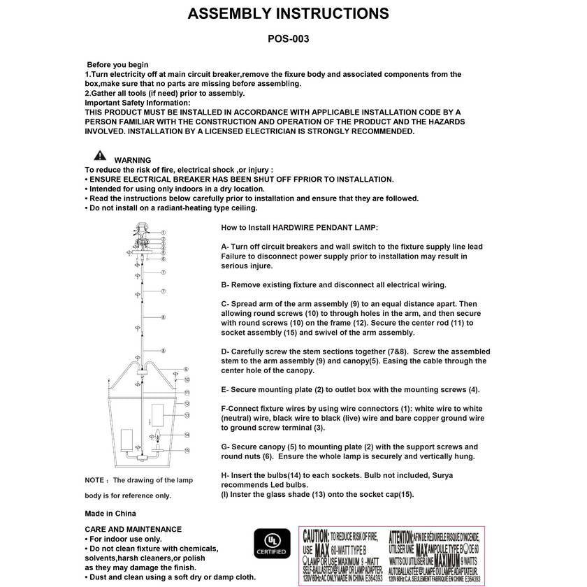 - Colors: Fixture: Black; Shade: Clear; Cord: White