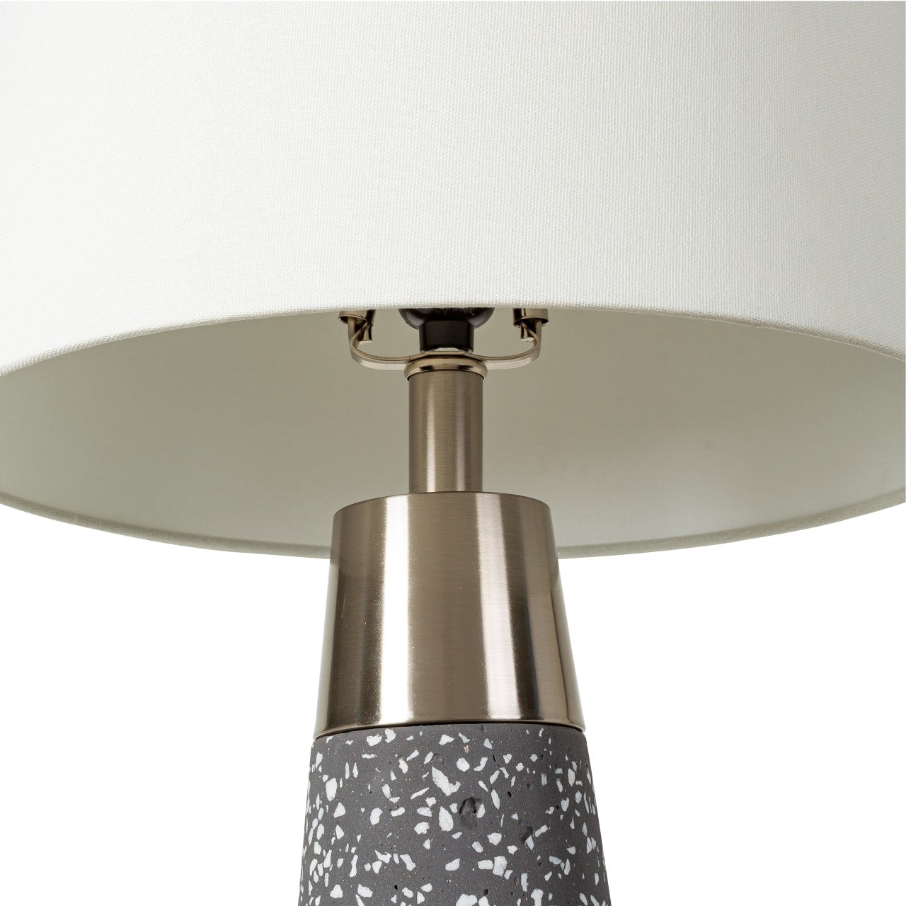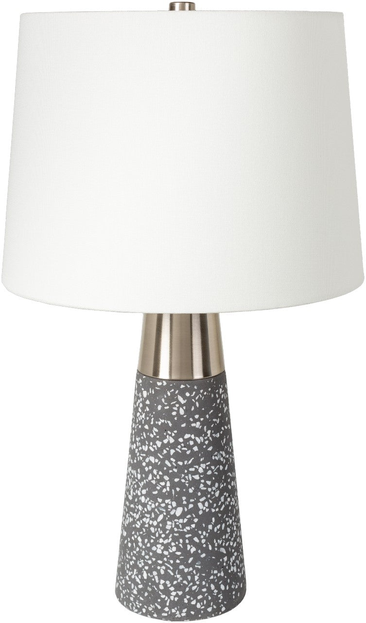 - Color: Body: Gray, Metallic - Nickel; Shade: White; Finial: Metallic - Nickel; Harp: Metallic - Nickel; Cord: Black