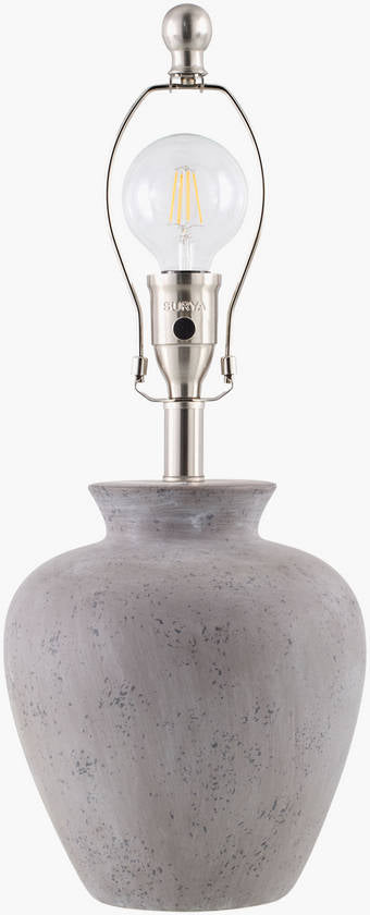 - Colors: Body: Gray; Shade (Outside): Beige; Shade (Inside): White; Finial: Metallic - Nickel; Harp: Metallic - Nickel; Cord: Translucent