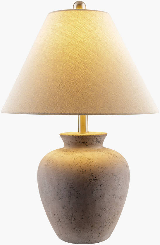 - Material: Body: Ceramic; Shade (Outside): Linen; Shade (Inside): Polyester; Finial: Iron