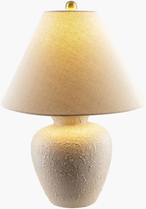 - Material: Body: Ceramic; Shade (Outside): Linen; Shade (Inside): Polyester; Finial: Iron