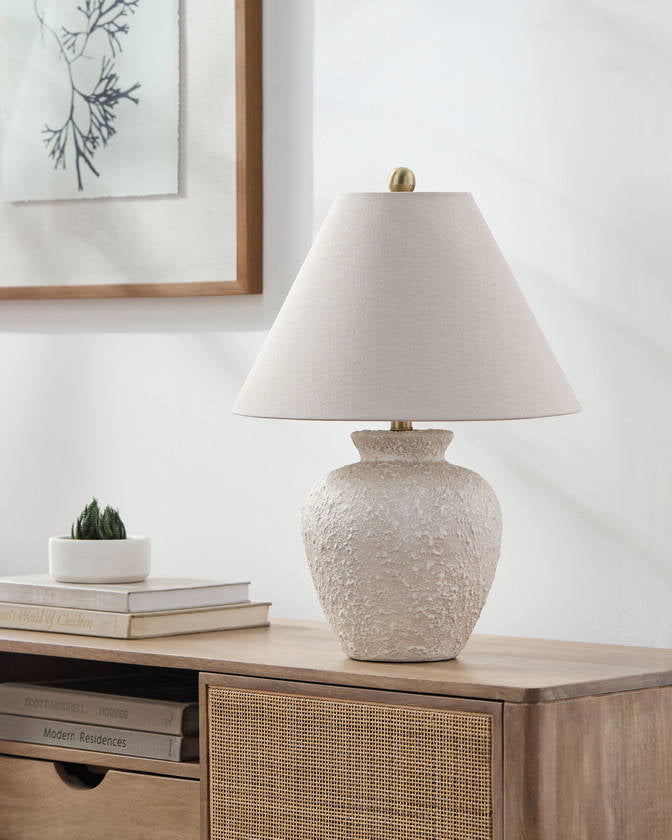 Elevate your home's decor with the Kalan Accent Table Lamp. This chic lamp features a ceramic body that displays an exquisite blend of elegance and sophistication, perfect for any space. It comes with a linen shade on the outside and polyester lining inside, creating a warm and inviting ambiance in your room. Standing at 22 inches tall, this stylish accent piece is not just about aesthetics but functionality as well. Its iron finial adds a touch of modernity to its overall design, making it a must-have for those who appreciate contemporary decor. Maintenance is easy too; simply wipe clean with a dry cloth to keep its pristine look intact. Please note: harsh cleaners should be avoided as they could potentially damage the finish. Add the Kalan Accent Table Lamp to your living space today and enjoy its captivating allure day in and day out!