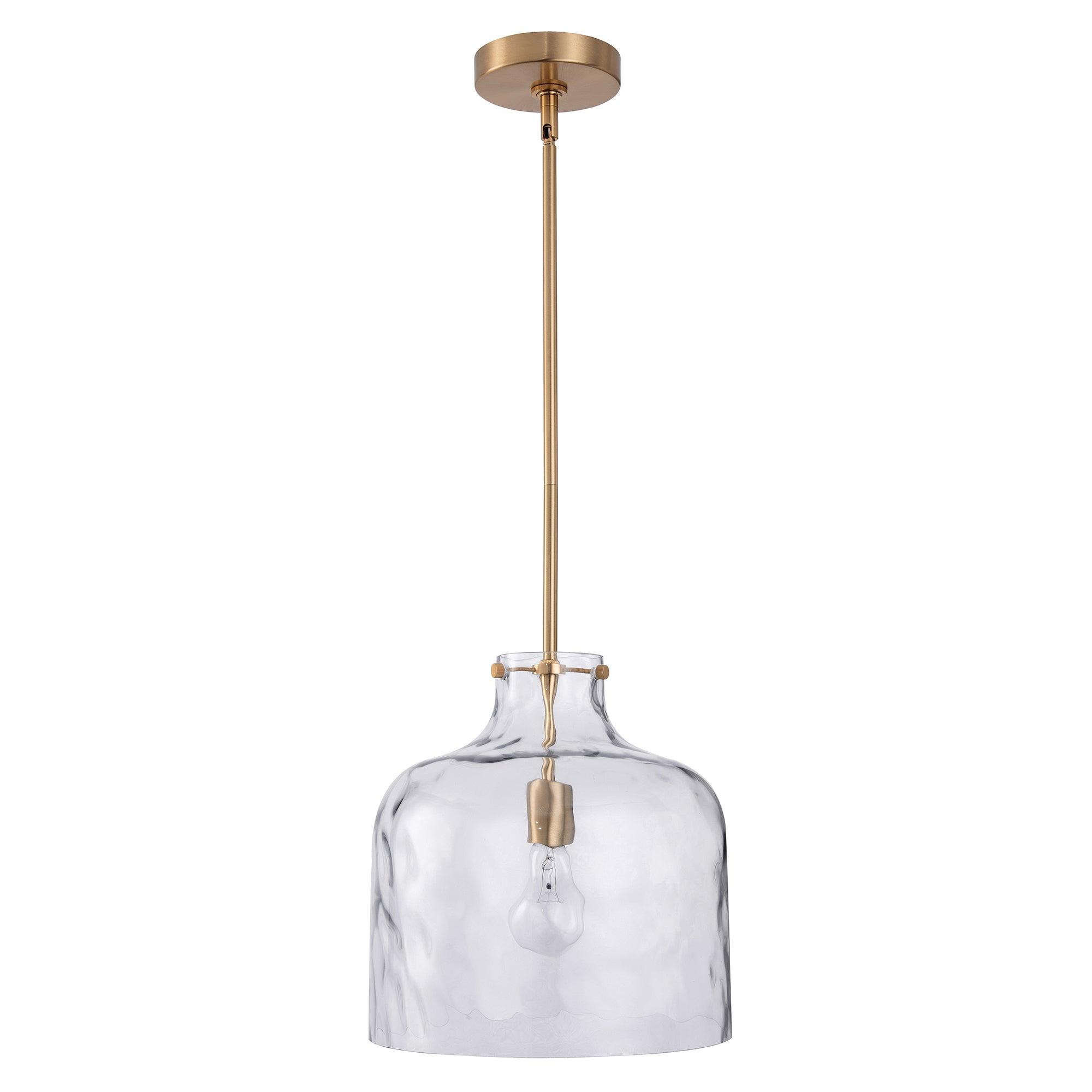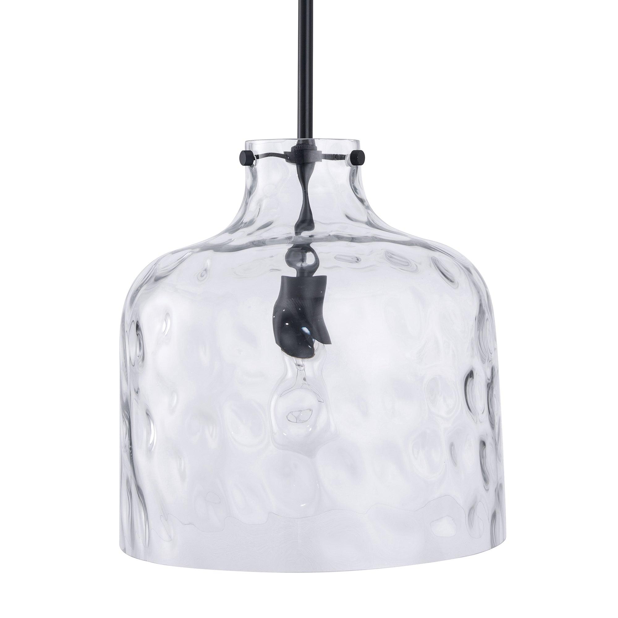 - Farmhouse-style pendant with clear textured glass — adds warmth and dimension while diffusing light effectively