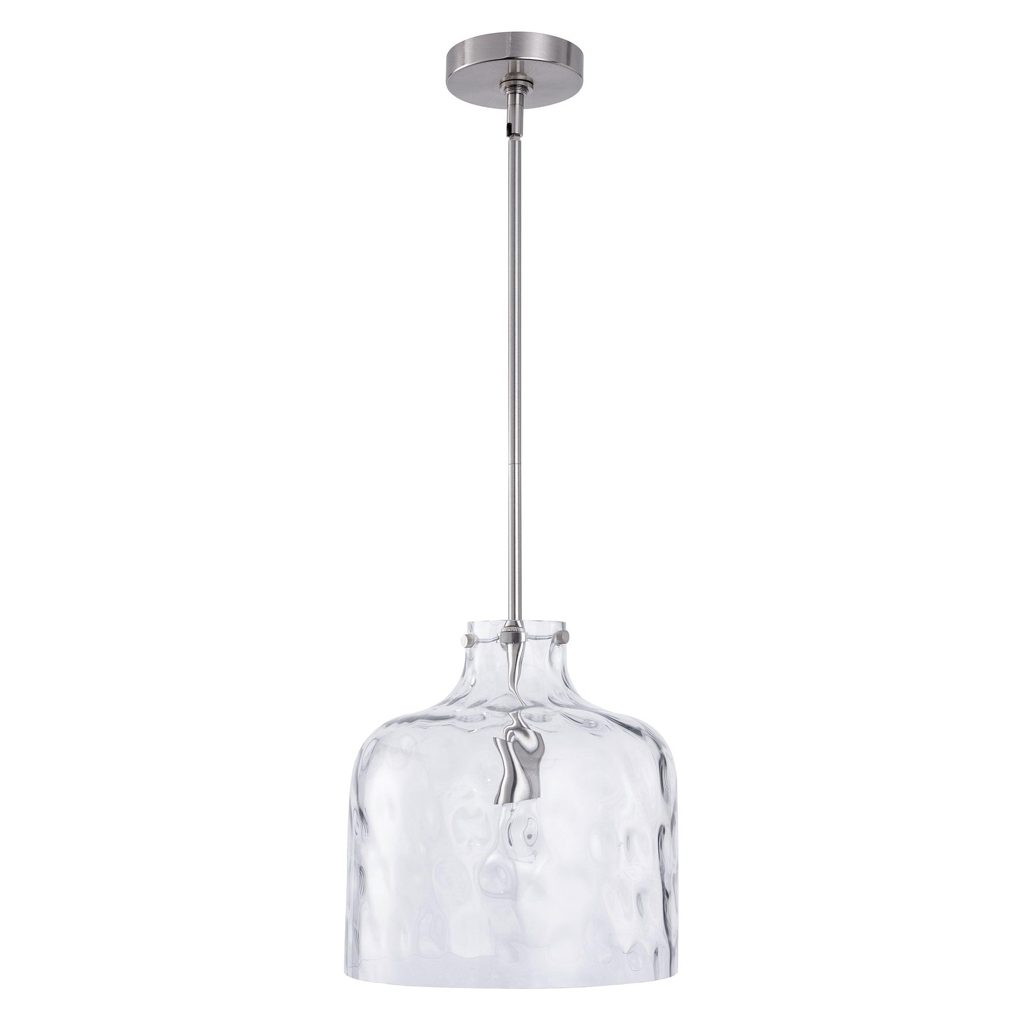 The Kara Farmhouse 1-Light Textured Glass Nickel Pendant Light offers a clean, functional design with farmhouse-inspired character. Designed for versatility, this single pendant adds focused illumination to kitchen islands, dining areas, or entryways with its clear glass shade and timeless nickel finish.
