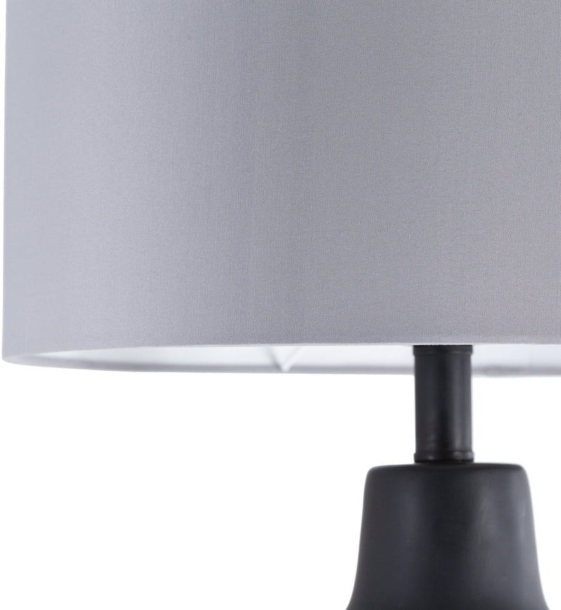 Material: Durable black matte concrete body paired with a soft gray linen shade.