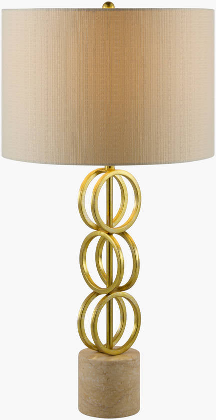 - Colors: Body: Gold; Base: Beige; Shade (Outside): Beige; Shade (Inside): White; Finial: Gold; Harp: Metallic - Nickel; Cord: Translucent