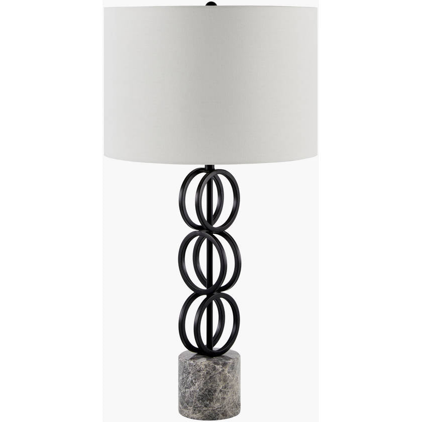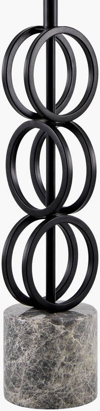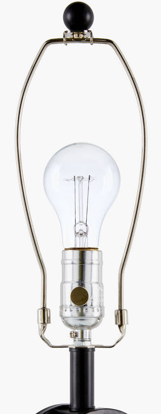 - Colors: Body: Black; Base: Gray; Shade: White; Finial: Black; Harp: Metallic - Nickel; Cord: Translucent