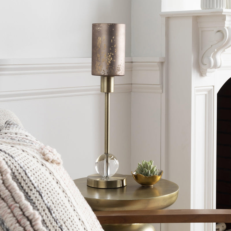 - Color: Body: Metallic - Brass, Clear; Base: Metallic - Brass; Shade: Camel; Cord: Translucent