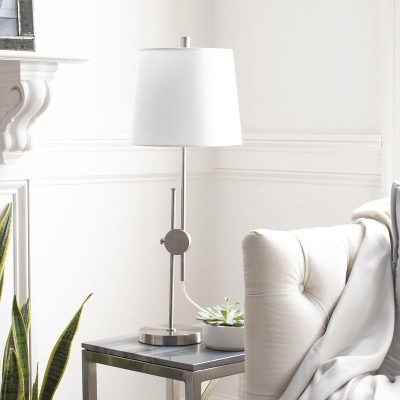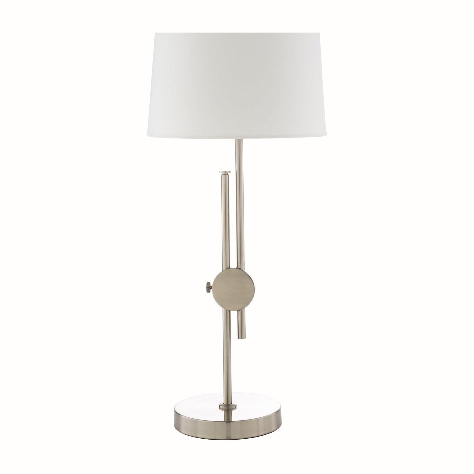 - Color: Body: Metallic - Nickel; Base: Metallic - Nickel; Shade (Outside): Ivory; Shade (Inside): White; Finial: Metallic - Nickel; Harp: Metallic - Nickel; Cord: Translucent