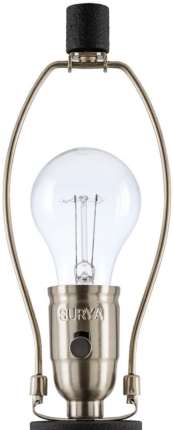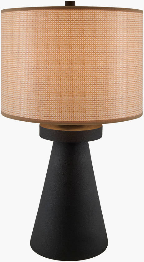 - Colors: Body: Black; Shade (Outside): Brown; Shade (Inside): Orange; Finial: Black; Harp: Metallic - Nickel; Cord: Translucent