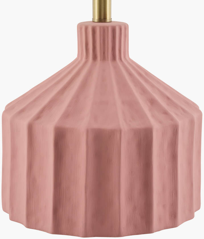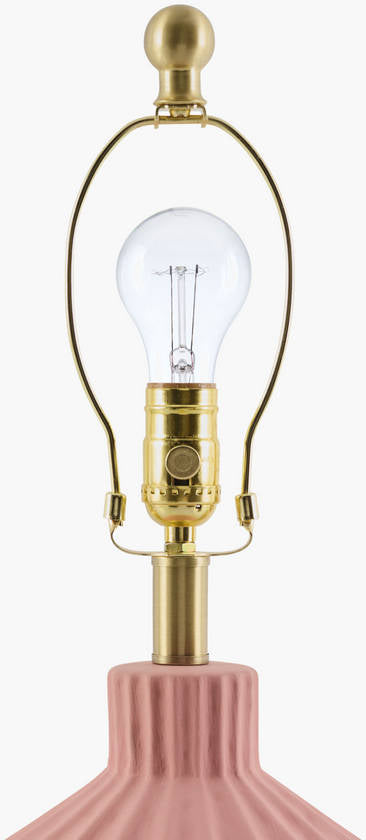- Colors: Body: Pink; Shade: White; Finial: Metallic - Brass; Harp: Metallic - Gold; Cord: Translucent