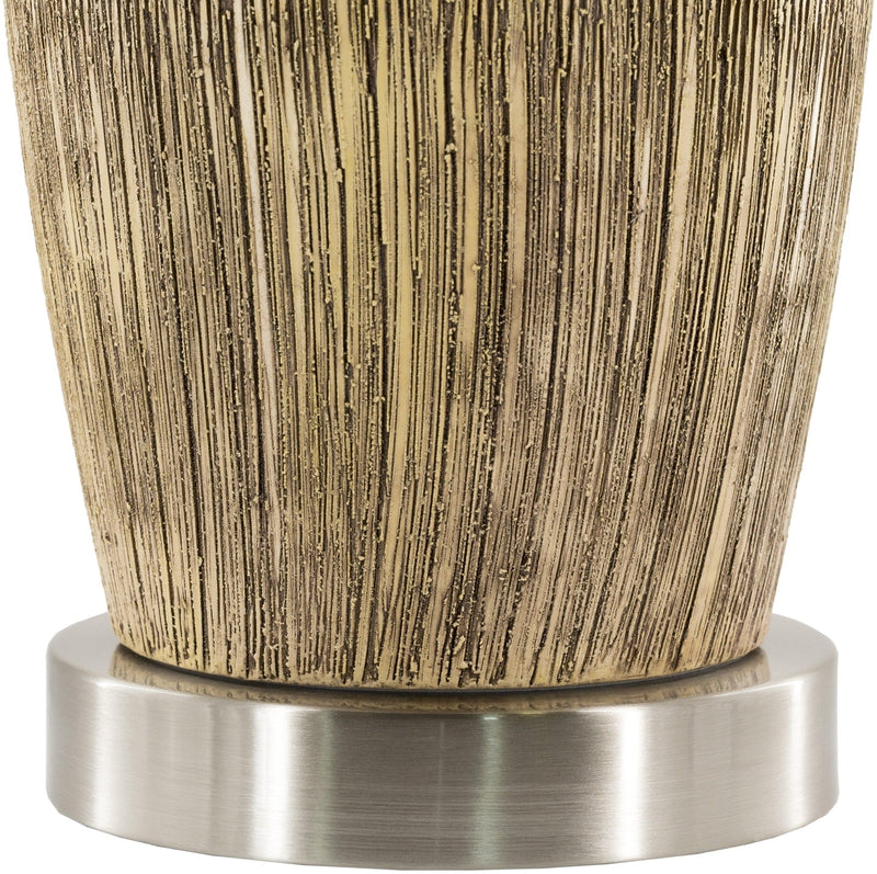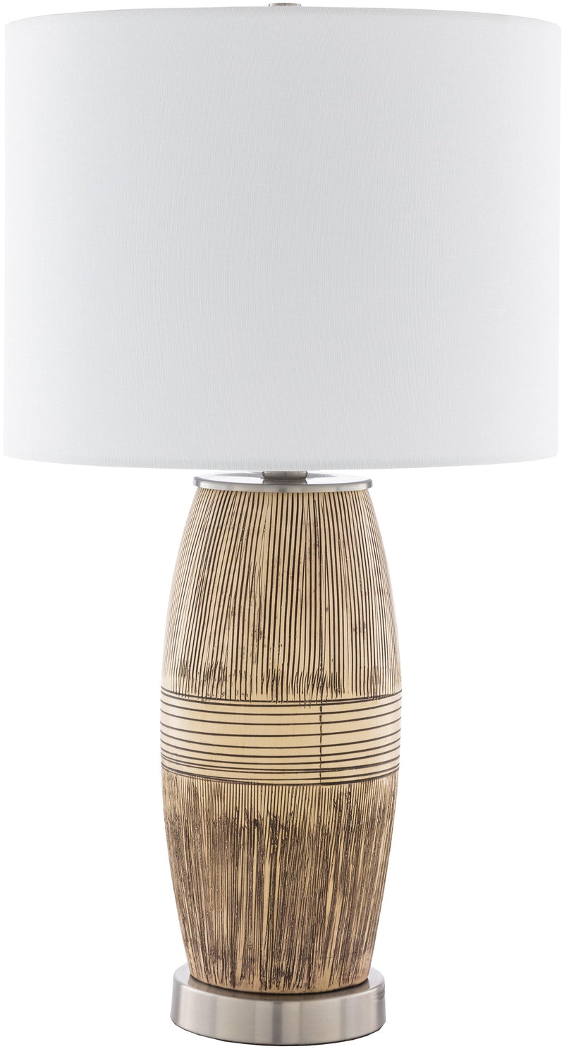 - Color: Body: Dark Brown; Base: Metallic - Nickel; Shade: White; Finial: Metallic - Nickel; Harp: Metallic - Nickel; Cord: Translucent