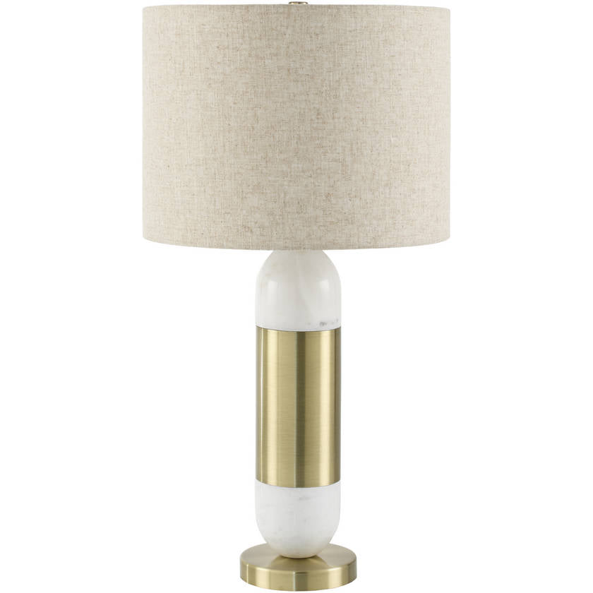 Indulge in luxury with the Monte accent table lamp. This chic lighting piece boasts a 29-inch tall body made of exquisite marble and iron, lending your space an air of opulence. The Iron base ensures stability while the linen exterior and polyester interior of the shade emit a soft, warm glow when lit. Not only is it a feast for the eyes but also easy to maintain ? just wipe clean with a dry cloth and avoid harsh cleaners to keep its finish pristine. Whether you're looking to elevate your room's decor or simply want a tasteful lighting solution, this stunning table lamp is sure to impress.