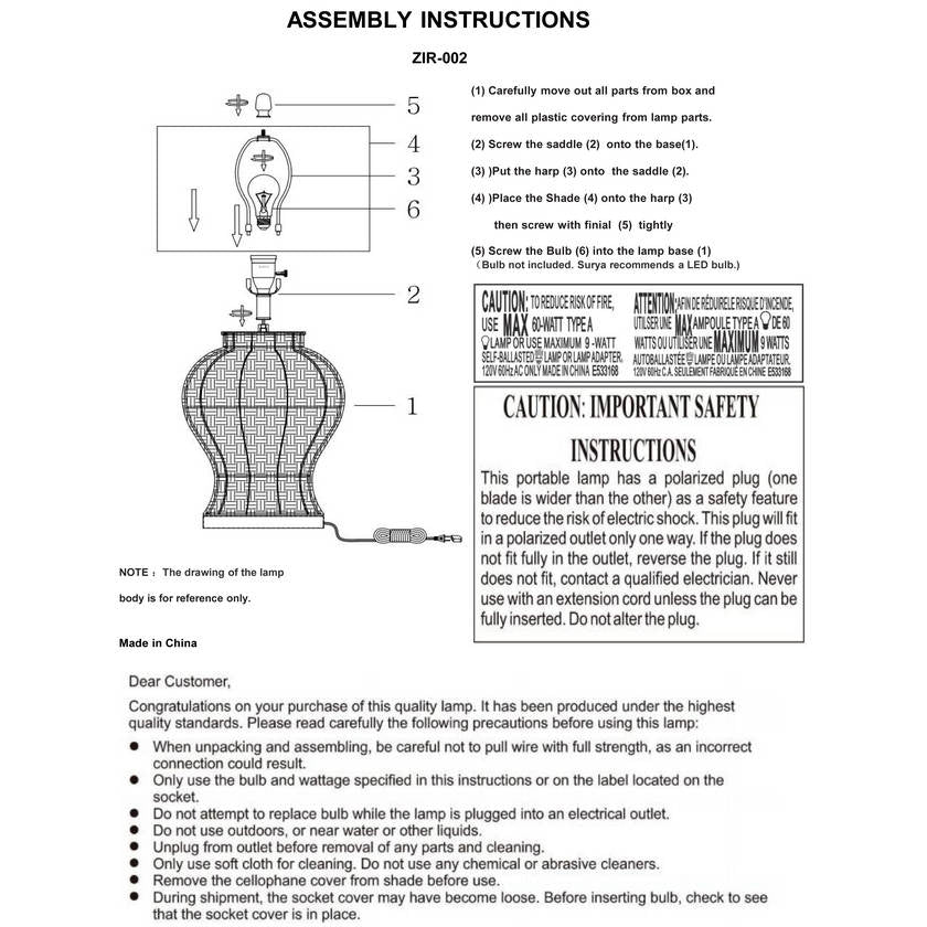 - Material: Body: Rattan; Shade (Outside): Linen; Finial: Iron