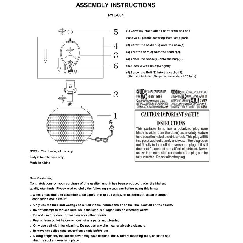 - Colors: Body: Black; Shade: White; Finial: Metallic - Silver; Harp: Metallic - Nickel; Cord: Translucent