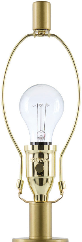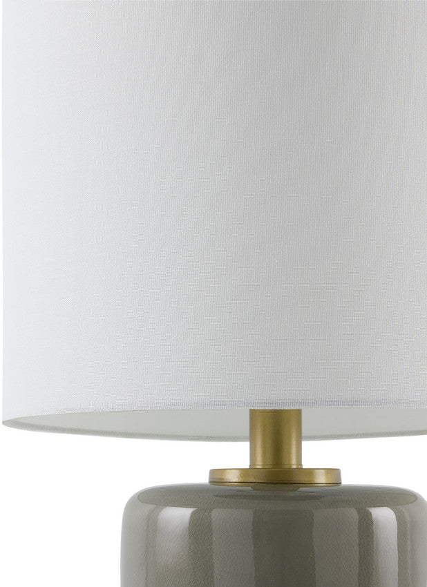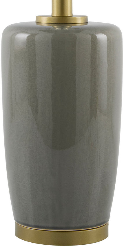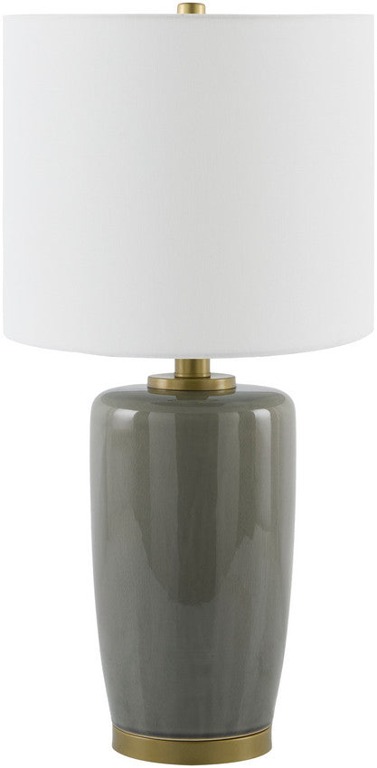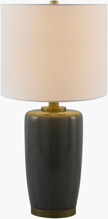 - Colors: Body: Gray; Base: Metallic - Brass; Shade: White; Finial: Metallic - Brass; Harp: Metallic - Brass; Cord: Black