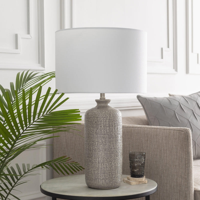 - Color: Body: Medium Gray; Finial: Clear; Harp: Metallic - Nickel