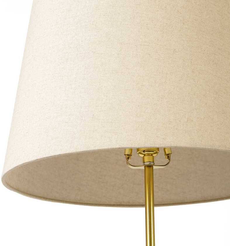 - Color: Body: Gold, Black; Base: Gold; Shade (Outside): Cream; Shade (Inside): White; Finial: Gold; Harp: Metallic - Brass; Cord: Black