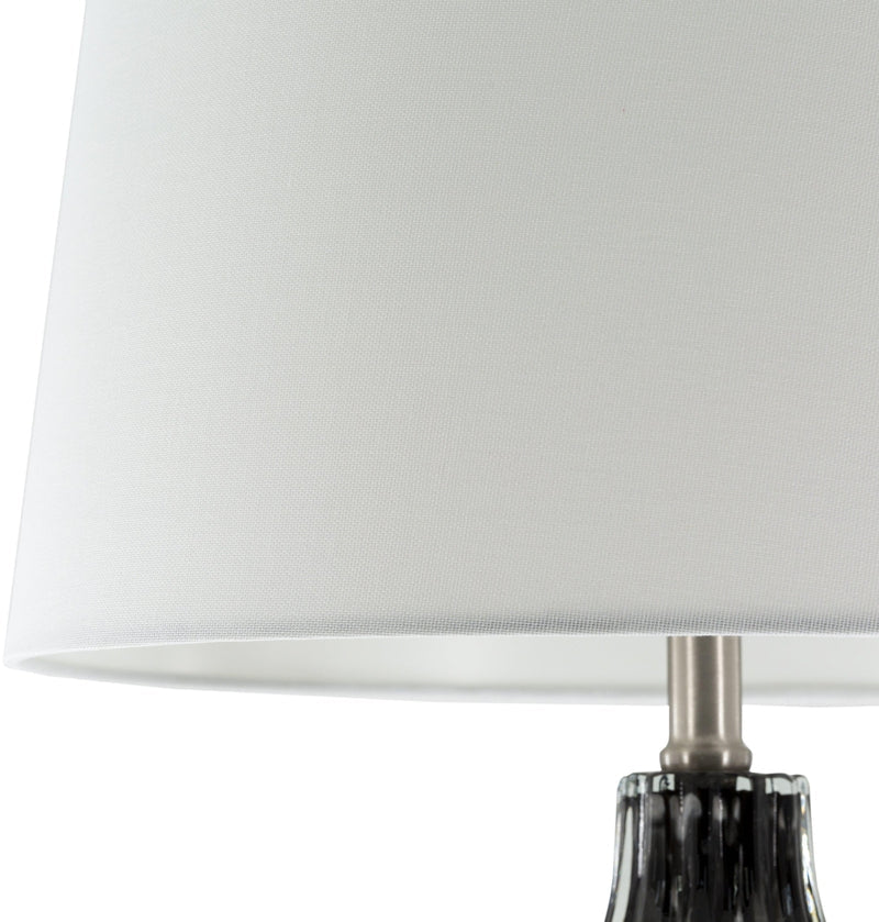 - Color: Body: Charcoal, White; Base: Metallic - Nickel; Shade: White; Finial: Metallic - Nickel; Harp: Metallic - Nickel; Cord: Translucent