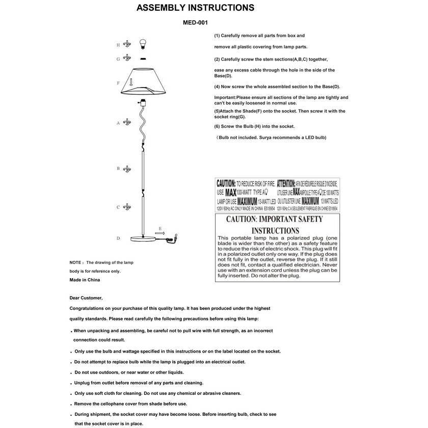 - Colors: Body: Metallic - Brass; Base: Metallic - Brass; Shade: White; Cord: Translucent