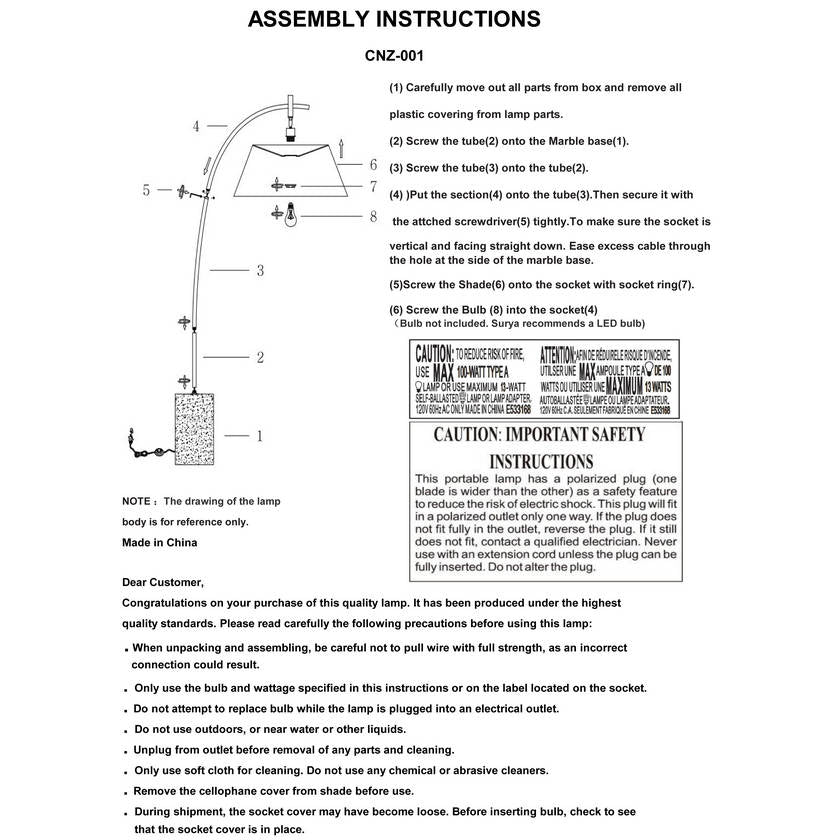 - Colors: Body: Black; Base: Beige; Shade: White; Cord: Black