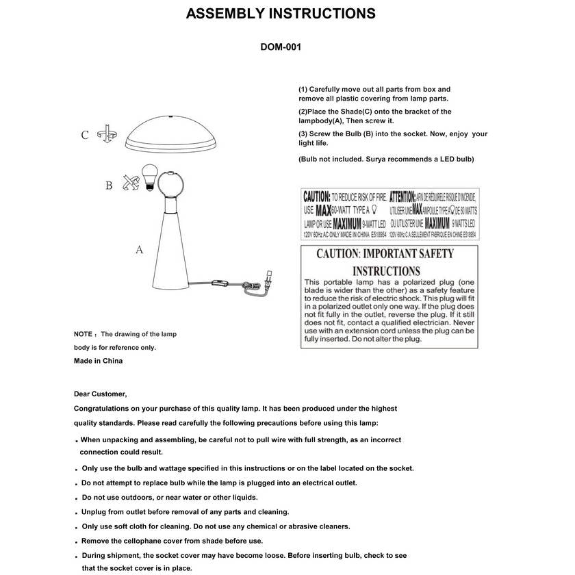 - Material: Body: Iron; Shade (Outside): Metal; Shade (Inside): Metal