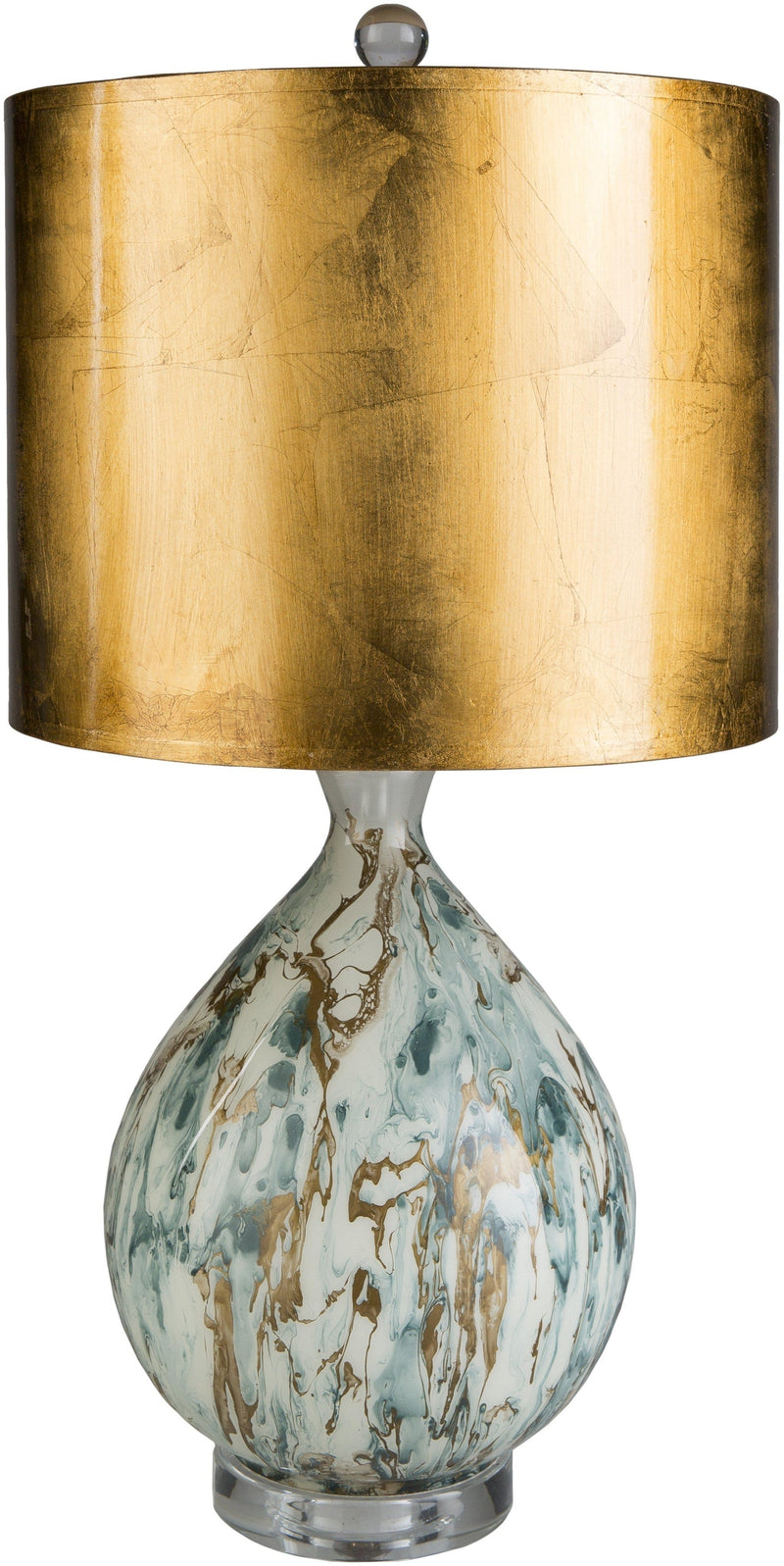 - Color: Body: Ivory, Metallic - Gold, Ice Blue; Base: Clear; Finial: Clear; Harp: Metallic - Brass