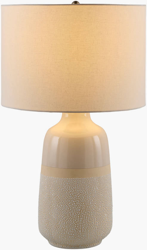 Illuminate your space with a touch of Bohemian Global charm with the Sulzberg accent table lamp. Standing at 27 inches tall, this striking piece boasts a ceramic body that adds a unique, earthy texture to any room. The linen shade lends a soft, ambient glow while its plastic interior ensures durability and longevity. Topped with an iron finial for that extra dash of elegance, this lamp effortlessly blends eclectic design with functional lighting. Simply wipe clean with a dry cloth to maintain its radiant appeal and steer clear of harsh cleaners to keep it looking as vibrant as the day you got it. Transform your home into an oasis of light and style with the Sulzberg accent table lamp!