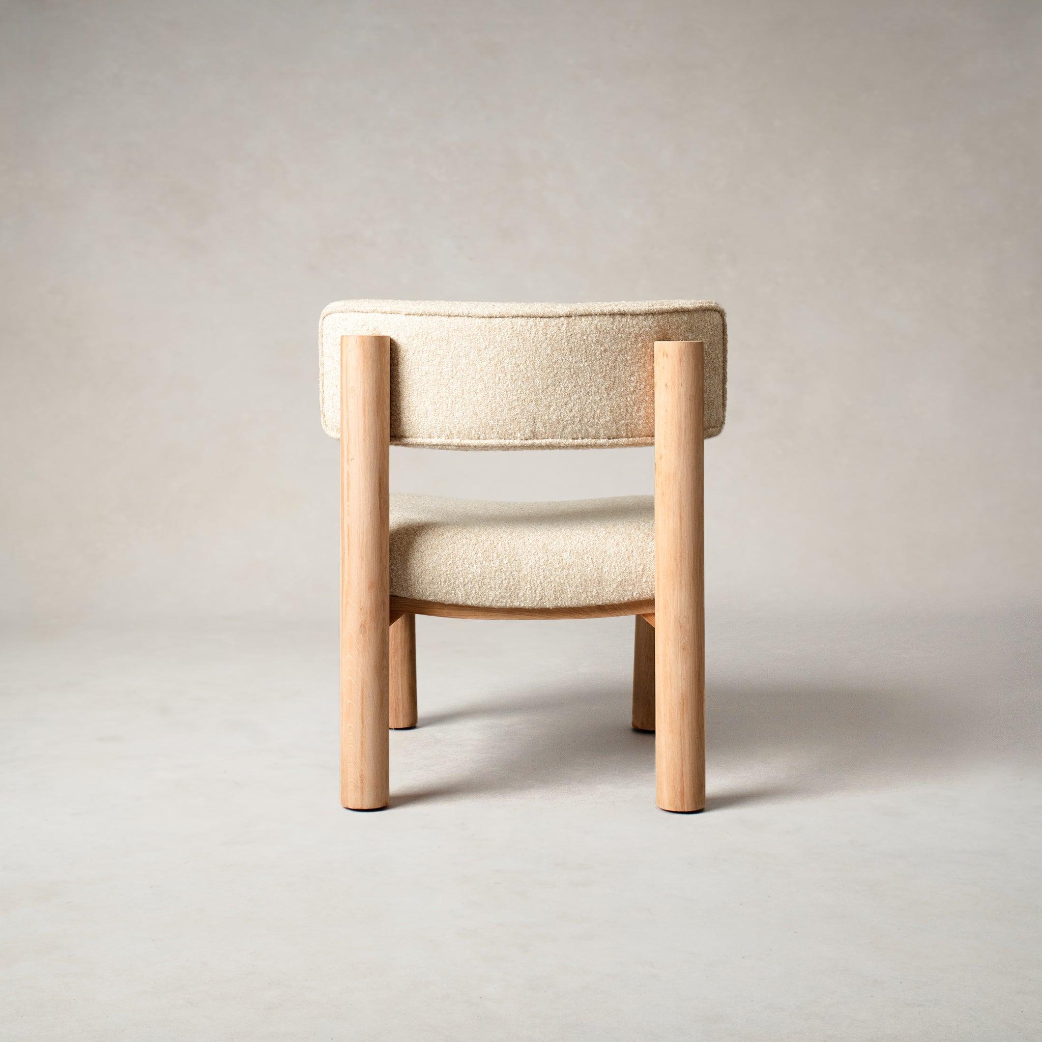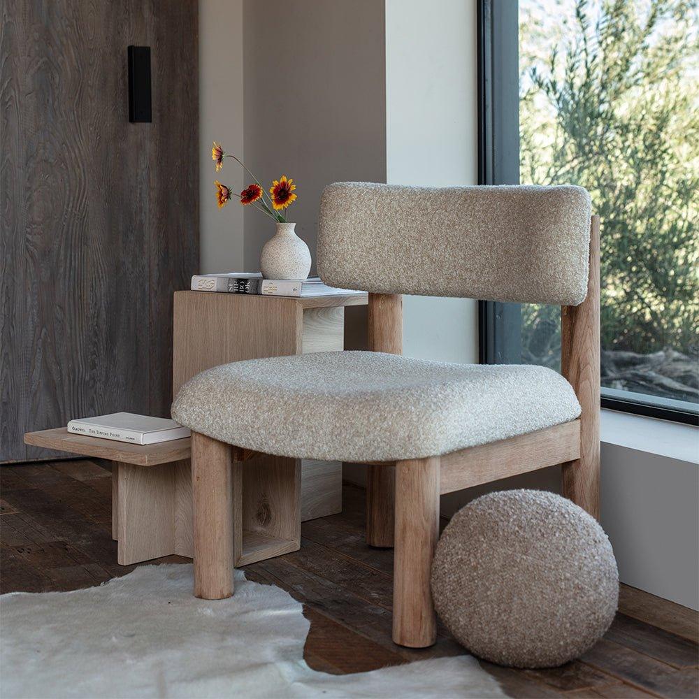 While we truly believe all our pieces are statement pieces, the Teddy Accent Chair is a fan favorite. The chair’s white oak structure with a natural stain works perfectly with the off-white boucle upholstery. The shape is comfortable, interesting to viewers, and elegant with straight column legs.