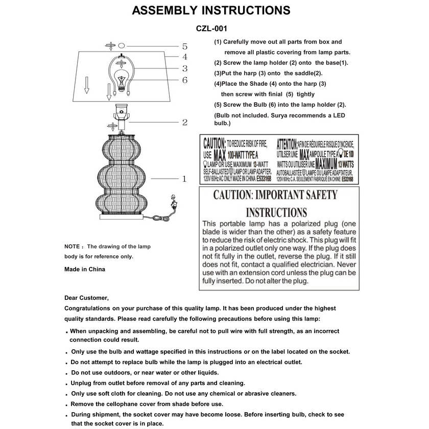 - Material: Body: Rattan; Base: Iron; Shade (Outside): Linen; Shade (Inside): Polystyrene; Finial: Iron