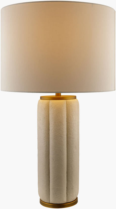 - Colors: Body: Beige; Base: Metallic - Brass; Shade: White; Finial: Gold; Harp: Metallic - Brass; Cord: Translucent