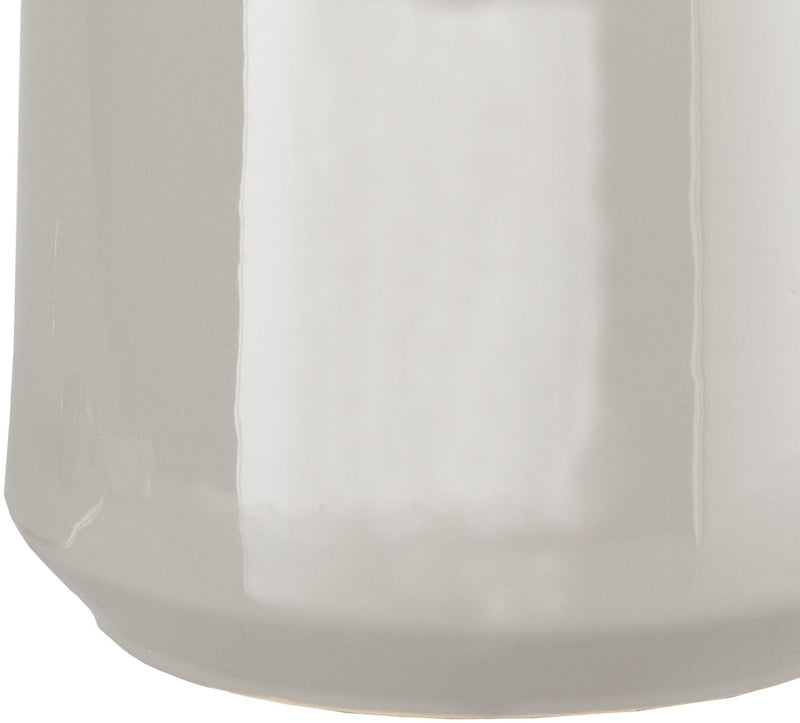 - Color: Body: Medium Gray, Tan; Finial: Medium Gray; Harp: Metallic - Nickel