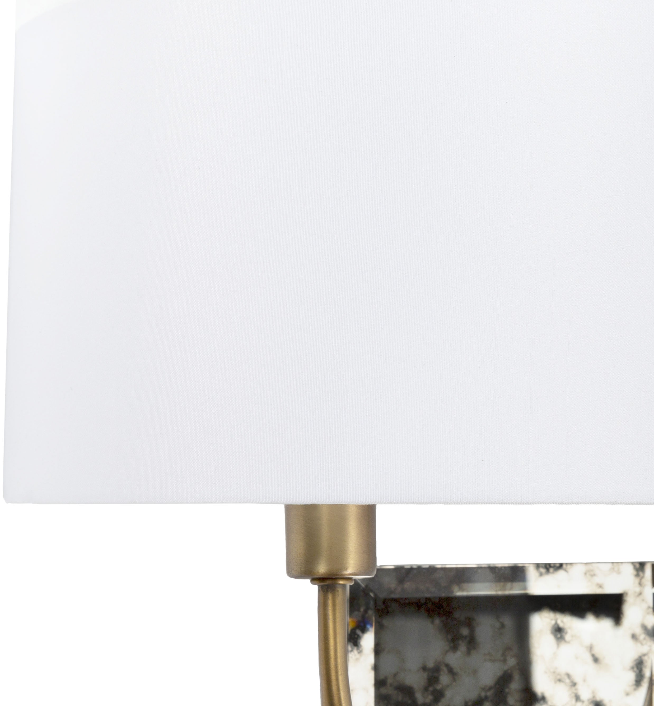 - Fixture: Metallic - Brass; Base: Metallic - Brass; Shade: White; Cord: Translucent Linen Shade